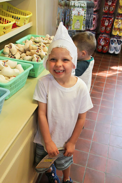 After touring the Windmill, we walked back to look in the shops and try on the wooden shoes, of course! There was a playground and carousel the boys enjoyed too. We spent about 2 hours there and it was the perfect amount of time to see it all.