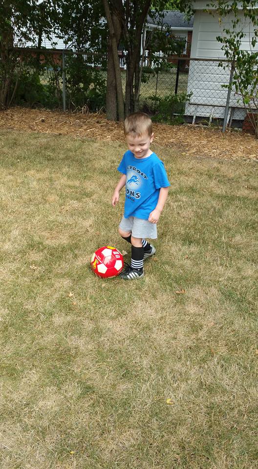 It's hard to believe in a few short weeks soccer will be starting. Scott will be coaching Sean's U7 team complete with a referee, rules, positions, and score-keeping. And believe it not, Evan will be old enough to play this fall! We had him try on his new shin guards, socks, and soccer shoes to make sure they fit yesterday and he was loving running around in his gear. He's getting so big!
