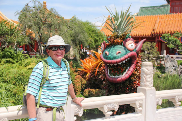 And now it was finally World Showcase time! We started at the beginning, stopping for some photos of the Flower and Garden displays. I grabbed a snack at the Mexico quick-service counter since I had a little Mexi-meltdown in the middle of Mexico. Sean was whining non-stop about when he would get to pick out a souvenir (I know, first world problems, right?) and I reached my limit. Needless to say I didn't get to ride the Mexico ride, but at least I got some nachos. We saw Norway and did the picture by the gnome too!