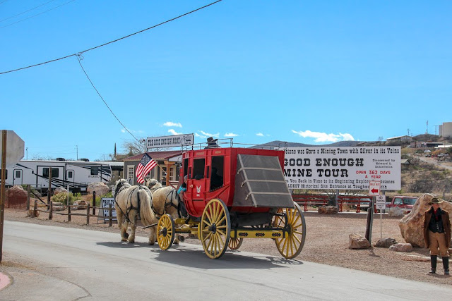 After our quick stop for a beer we walked back down to the Good Enough Mine company to do a guided tour down into a silver mine from the 1880's. The boys did panning for gold while they waited for our group to start and we got to wear some fun hard hats. The tour was nice and very informative, but it was quite different from our Colossal Cave tour from last year as there wasn't as much to actually see down in the mine. We can check that off our bucket list!
